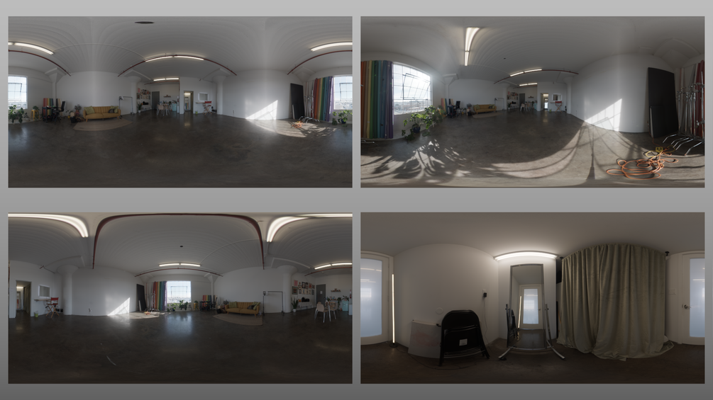 HDRI's taken from a photo studio in LA with a wide dynamic range. EXR and HDR formats included to work with any tools that accept them.